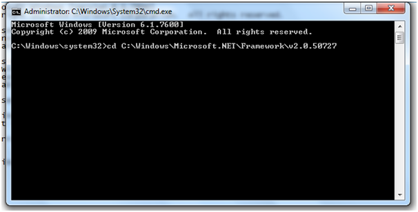 Go to the path C:\Windows\Microsoft.NET\Framework\v2.0.50727